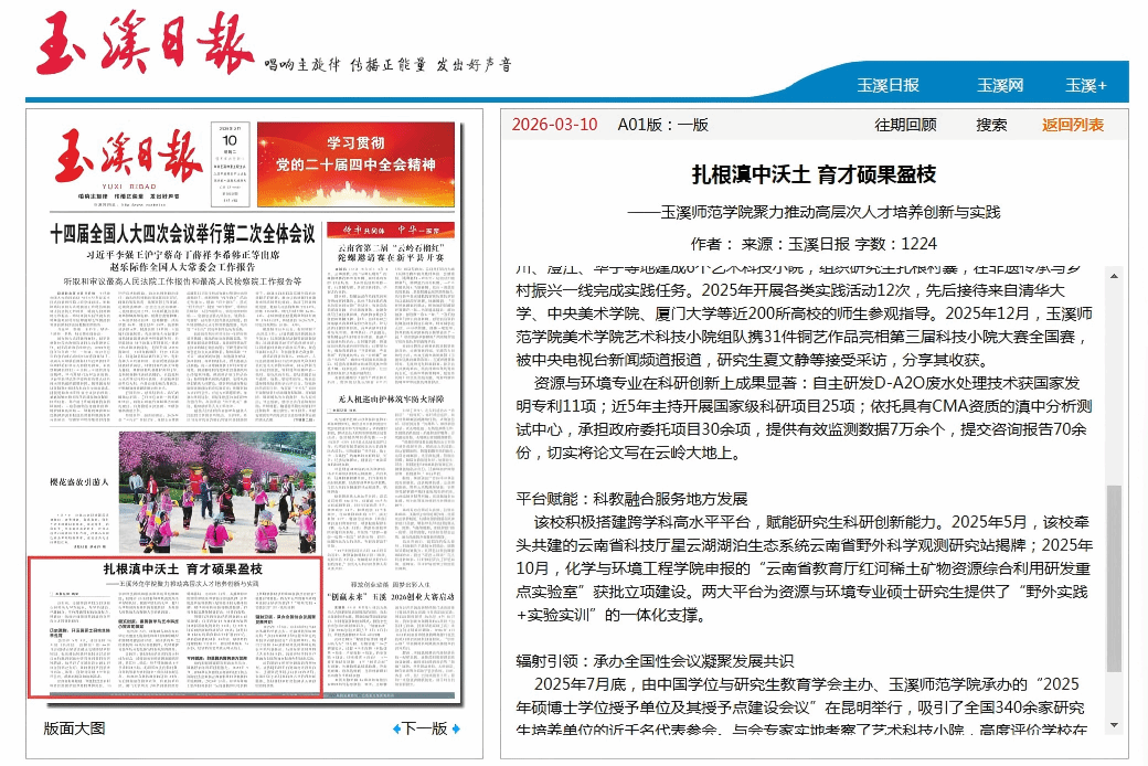 从首届硕士研究生报到到亮相央视,从搭建科研平台到承办全国性会议,玉溪师范学院正以扎实的步伐,在滇中沃土书写高层次人才培养的新篇章,为区域经济社会发展注入强劲的高校动能。